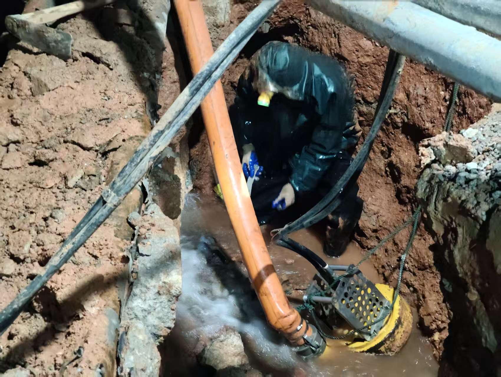 此次搶修現(xiàn)場(chǎng)環(huán)境極為復(fù)雜,漏水點(diǎn)藏于管道正下方,且管道上方密布電纜、光纜等線管,狹小的作業(yè)空間、復(fù)雜的施工環(huán)境給搶修工作帶來(lái)極大挑戰(zhàn)。彼時(shí)夜間氣溫低、坑道內(nèi)泥濘積水,進(jìn)一步增加了搶修難度。但搶修人員毫不退縮,毅然跳入冰冷的泥濘坑道,克服夜間低溫、泥水刺骨等多重困難,輪番上陣、連續(xù)作戰(zhàn)。他們趴在泥水里摸索漏點(diǎn)、徒手清理淤積的泥塊,又躬身對(duì)接管道、緊固密封部件。手套上的熱氣與冰冷的泥水形成鮮明對(duì)比,他們身上凍得直打哆嗦,卻始終堅(jiān)守崗位,心中只有“盡快修復(fù)漏點(diǎn)、恢復(fù)供水”的目標(biāo)。1月9日凌晨3點(diǎn),經(jīng)過(guò)數(shù)小時(shí)的緊張搶修,恢復(fù)了正常供水。