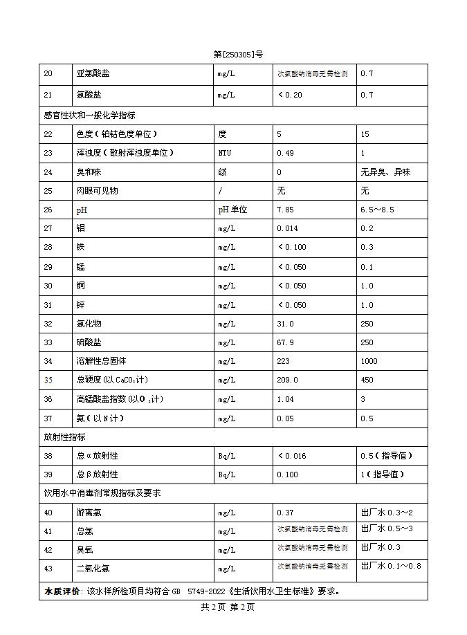 2025年3月二水廠出廠水水質(zhì)公告